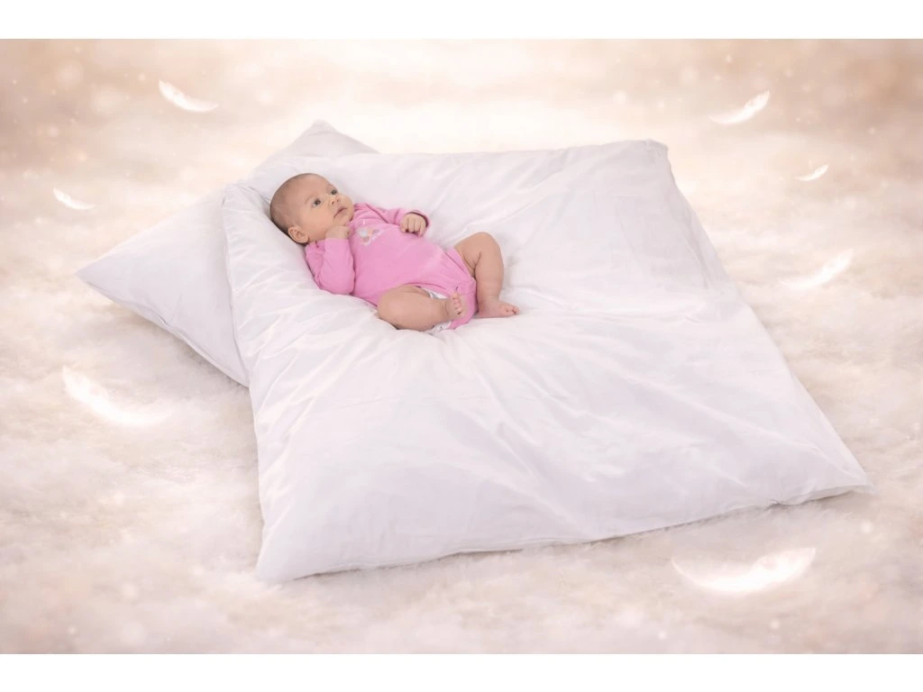 Hlavním produktem jsou jistě péřové zavinovačky pro miminko. Zavinovačka je plněná přesně potřebnou gramáží peří, které svým množstvím zajišťuje na jedné straně protažení šíje, pohodlné podložení hlavičky, schoulení končetin a stabilitu celého tělíčka dítěte, ale zároveň možnost propadnutí nejtěžších částí hlavičky i tělíčka na pevnou, rovnou a stabilní podložku, která je důležitá pro správný rozvoj těžiště dítěte a následně i jeho páteře.