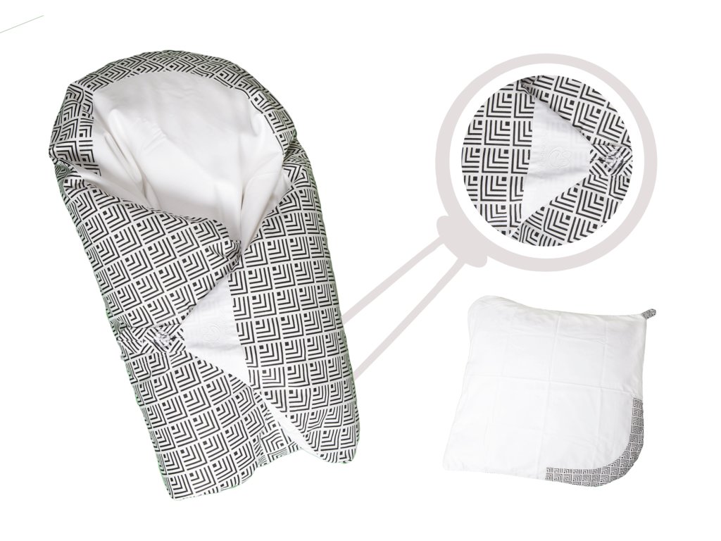 Originální povlak ve vzoru Černobílé vzory k péřové zavinovačce Dráček velikosti 80×80cm.