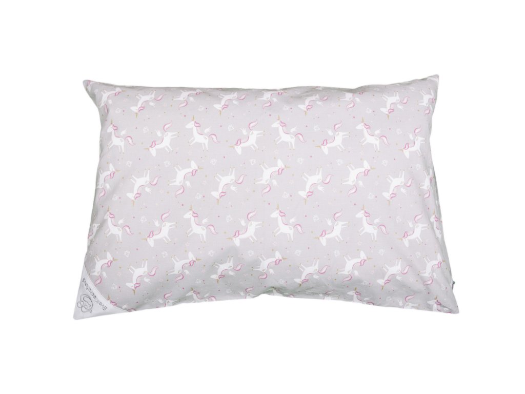 Povlak - Dětský polštář - 60x40 - Světle šedý jednorožec