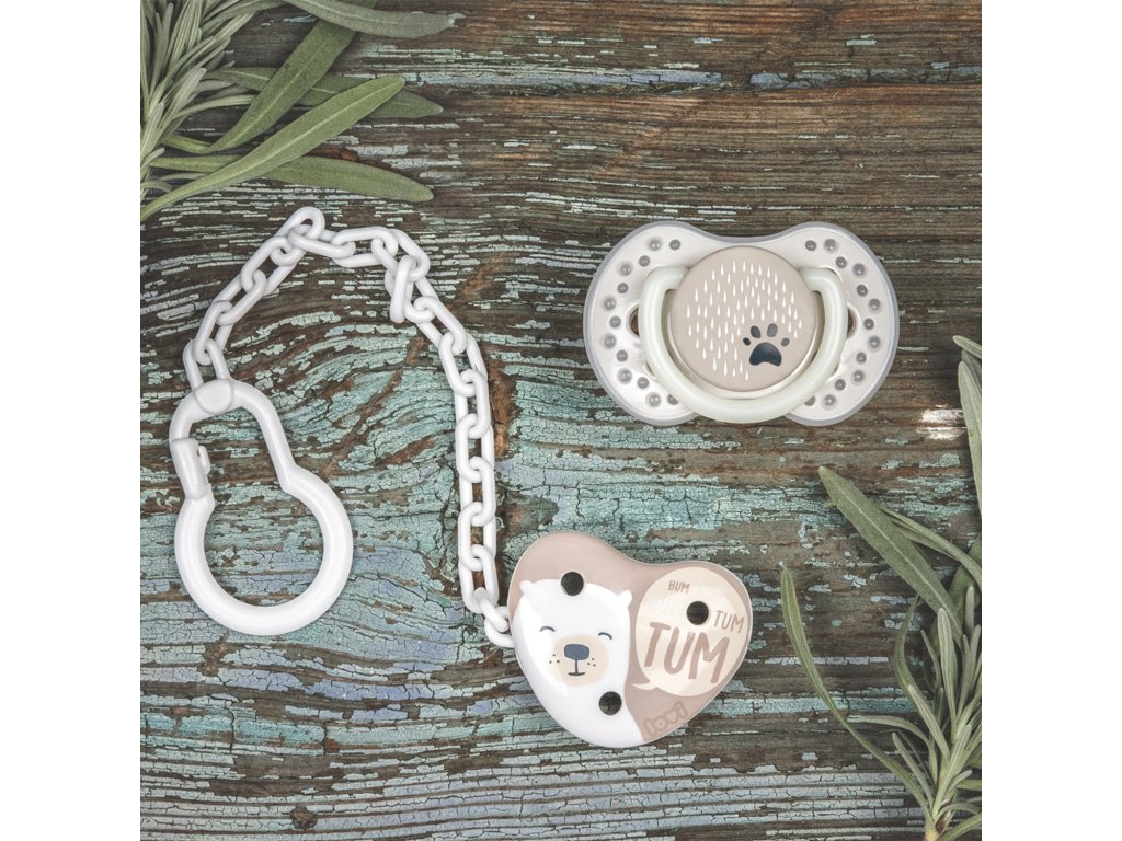 Řetízek s klipem pro pevné a stabilní připevnění dudlíku k oděvu dítěte. Chrání dudlík před ušpiněním nebo ztrátou.