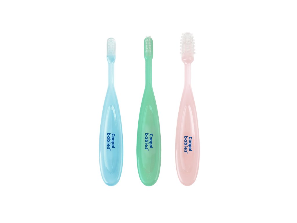 Sada tří zubních kartáčků je určena k péči o dásně a první zoubky dítěte. Skládá se ze tří kartáčků: kartáčku na masáž dásní pro děti bez zoubků