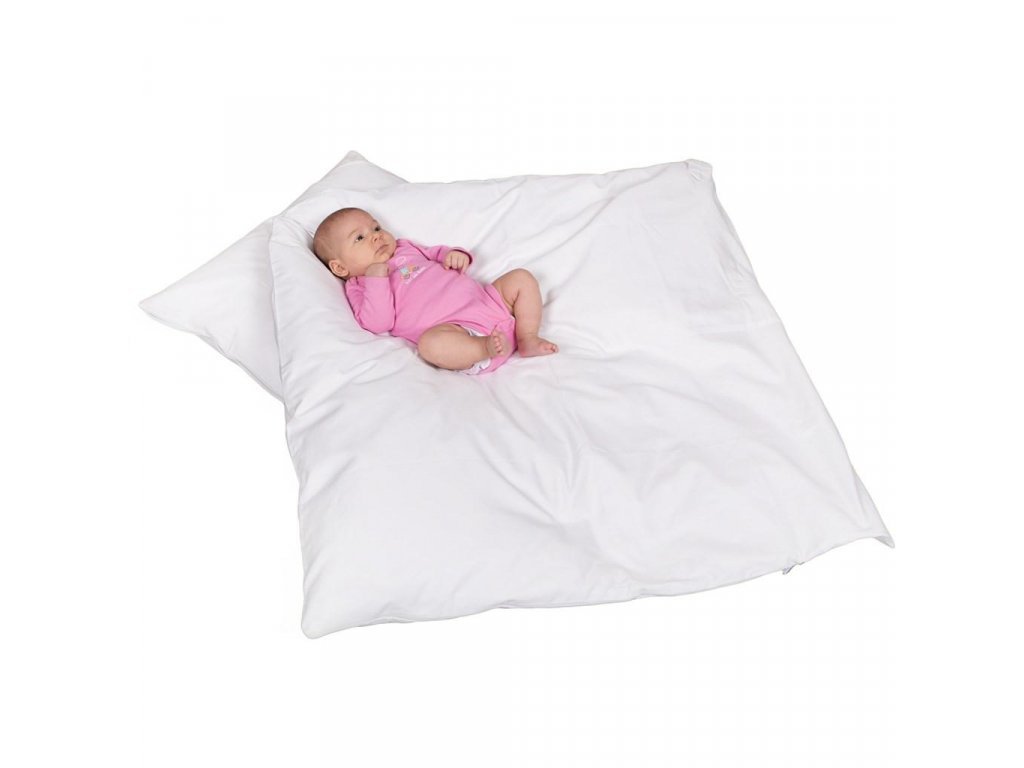 Dětský péřový polštářek 40x60 je nezbytnou součástí pod každou zavinovačku v oblasti hlavičky (je součástí všech SETŮ). Protahuje šíji a stabilizuje hlavičku v ose. Základ pro řešení Kiss syndromu, záklonu a úklonu hlavičky miminka, kterého se musí co nejdříve zbavit. Využívá se do hnízda, kočárku i postýlky. Slouží po celý život.
