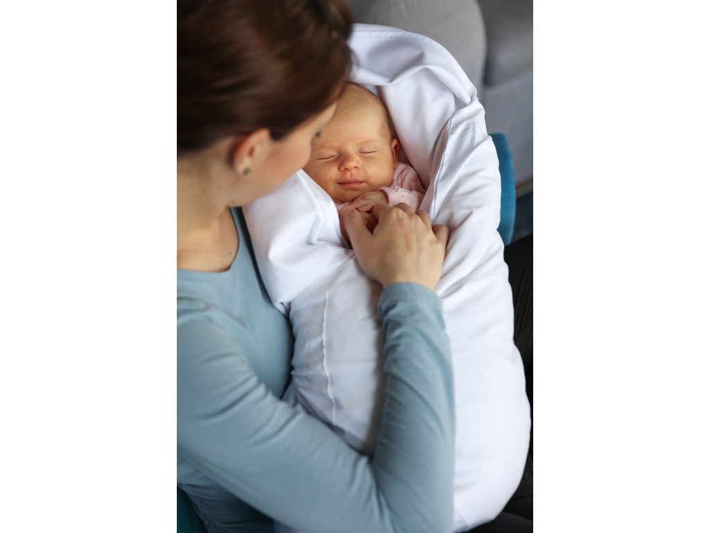Dětský péřový polštářek 40x60 je nezbytnou součástí pod každou zavinovačku v oblasti hlavičky (je součástí všech SETŮ). Protahuje šíji a stabilizuje hlavičku v ose. Základ pro řešení Kiss syndromu, záklonu a úklonu hlavičky miminka, kterého se musí co nejdříve zbavit. Využívá se do hnízda, kočárku i postýlky. Slouží po celý život.