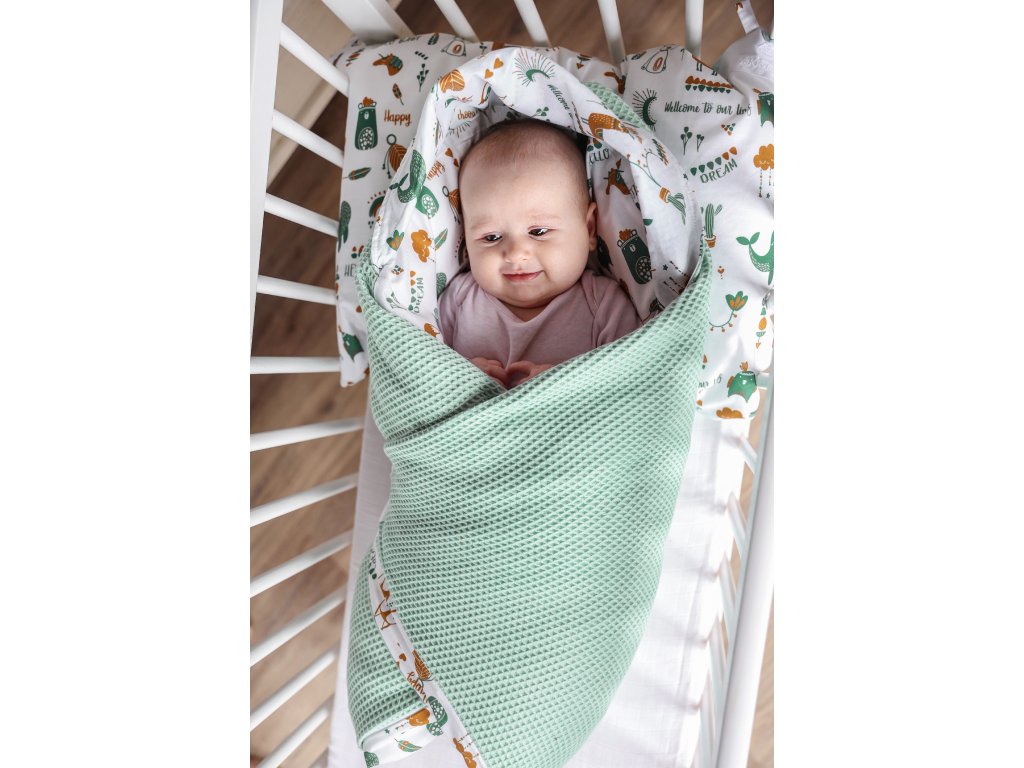 Multifunkční deka je nadčasová část výbavičky pro dítě od narození do 10-ti let věku. Měkká deka má poutka, na která je možno upevnit dudlík nebo hračku. Od narození do 4.m. věku (samostatně nebo v SETU Pokojíček) slouží jako mantinel kolem záhlavní části postýlky. Od 4.měsíce věku do 4 roku ji využíváme v pokojíčku či v obýváku na zemi jako hrací deku nebo přikrývku, do které je možno dítě také zabalit. O 4. do 10. roku pak slouží na překrytí válendy nebo jako přikrývka.
