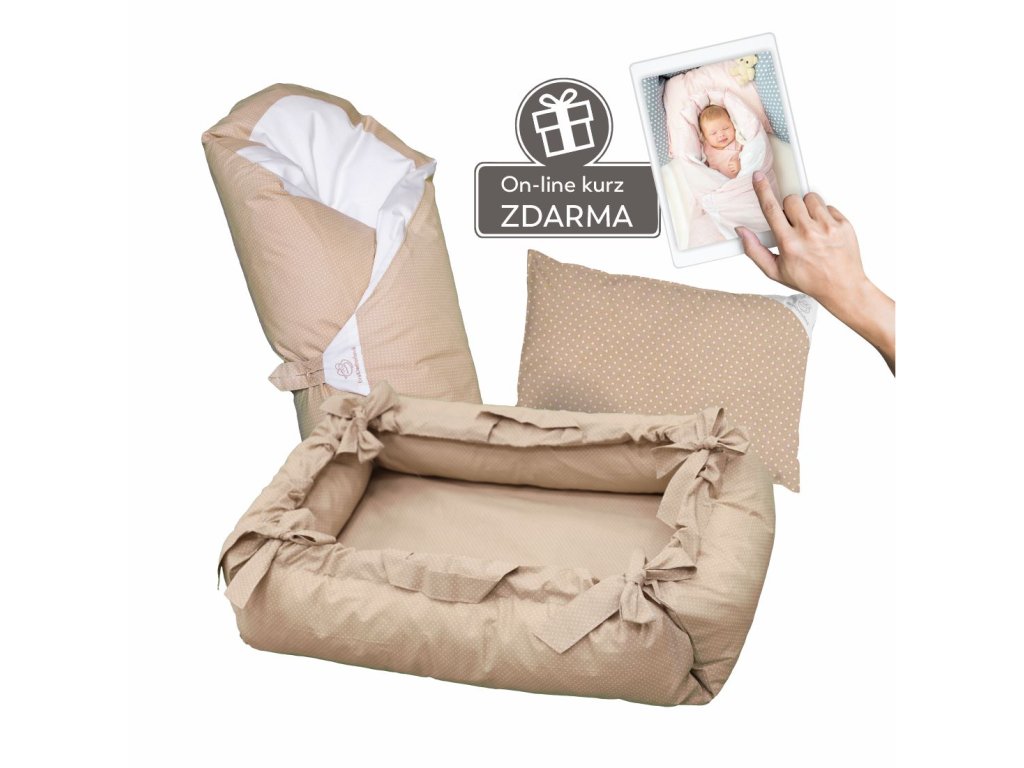 SET 5v1 - Malý Pelíšek - Béžový s bílými tečkami + Zdarma online kurz - Hnízdění miminka v pelíšku