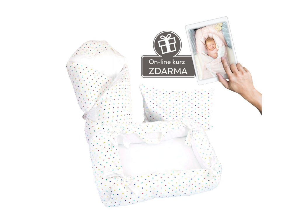 SET 5v1 - Malý Pelíšek - Bílý s barevnými puntíky + Zdarma online kurz - Hnízdění miminka v pelíšku