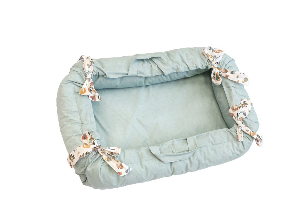 Hnízdečko pro miminko zajišťuje ideální polohu kojence v postýlce, případně na stole nebo na zemi. Ouška hnízdečka usnadní samotné přenášení pelíšku a jeho mantinely pomáhají udržet správnou polohu miminka a celkovou bezpečnost dítěte.