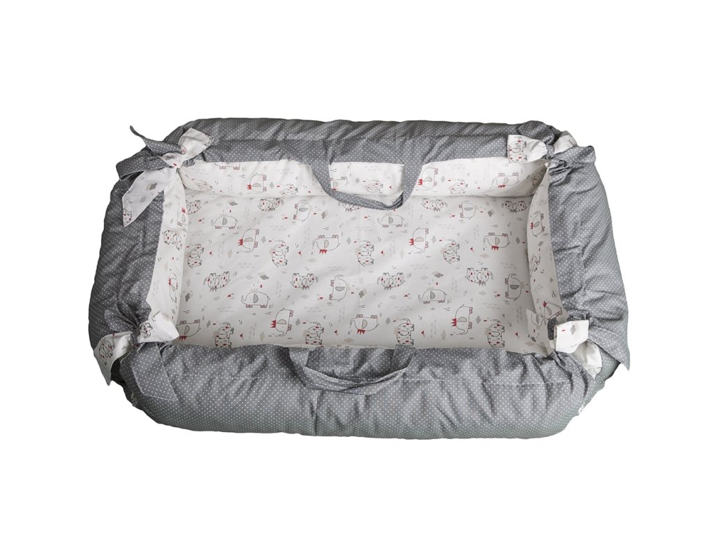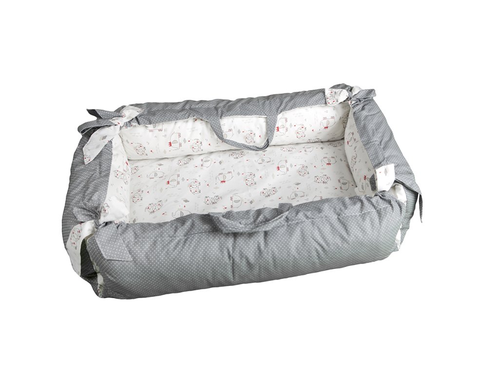 Hnízdečko pro miminko zajišťuje ideální polohu kojence v postýlce, případně na stole nebo na zemi. Ouška hnízdečka usnadní samotné přenášení pelíšku a jeho mantinely pomáhají udržet správnou polohu miminka a celkovou bezpečnost dítěte.