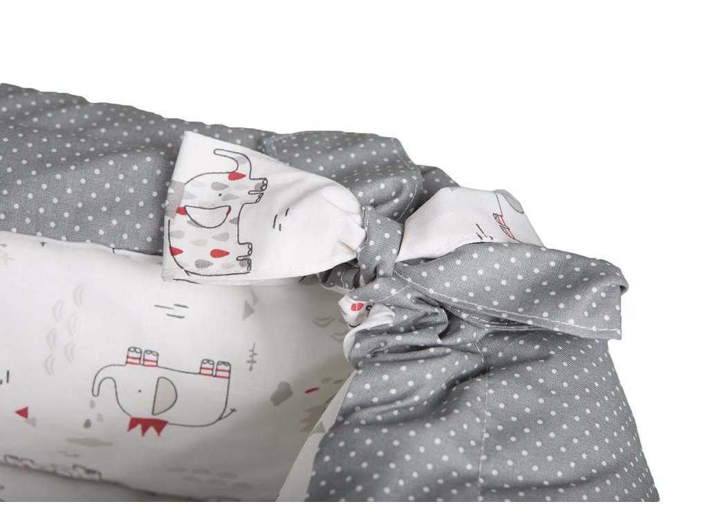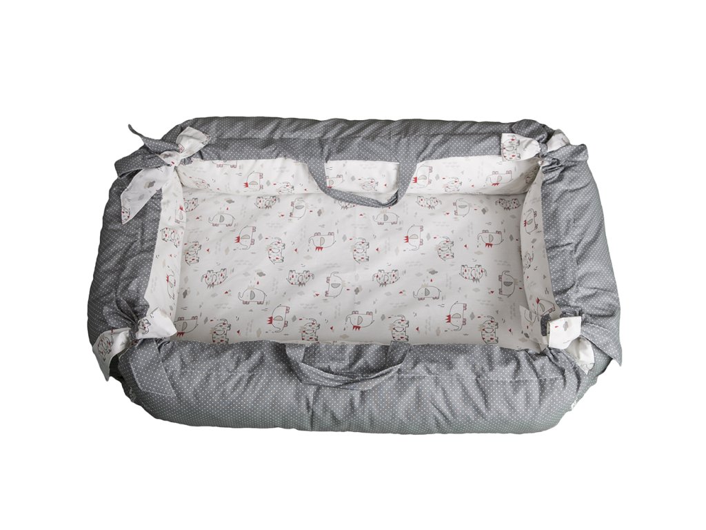 - Hnízdečkem pro miminko, který zajišťuje stabilitu dítěte v ose hlavičky s tělíčkem a s končetinami nad podložkou.
