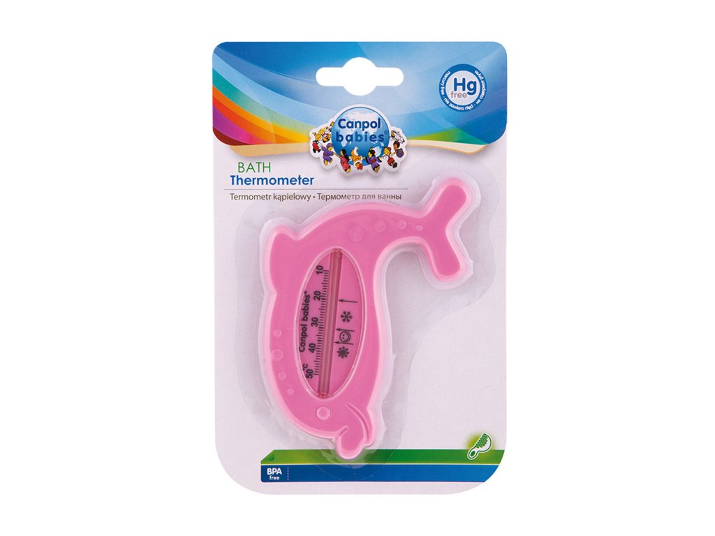 Koupací teploměr slouží ke kontrole teploty vody připravované koupací lázně malého dítěte. Je přesný, spolehlivý s dobře čitelnou stupnicí. K měření teploty se používá obarvený alkohol/petrolej - podle šarže výrobku. Trubička teploměru je bezpečně zapuštěna v těle teploměru tak, aby se k ní dítě nedostalo. Upozornění! Doporučená teplota koupací lázně malého dítěte se pohybuje mezi 32 - 37 °C a je na teploměru označena symbolem smějící se tváře. Teplota označená sněhovou vločkou je příliš nízká a teplota označená sluníčkem příliš vysoká.